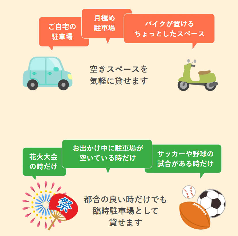 - 空き駐車場を有効活用したい方:自宅・所有物件のスペースが収益源に。